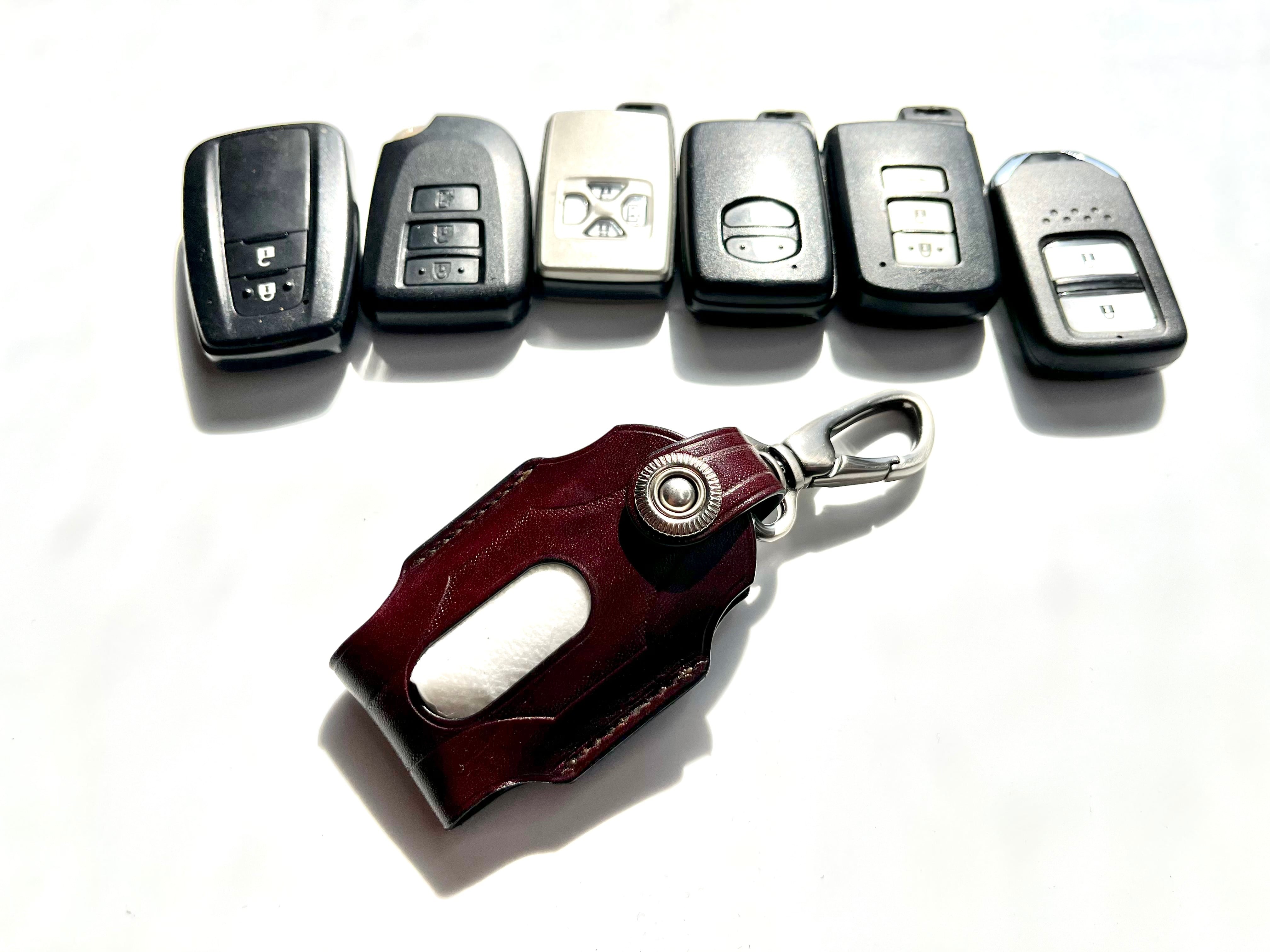 トヨタ車の複数種類のスマートキーにマルチ対応したベルギー産高級皮革『ルガトショルダー』を使用したキーカバー です。